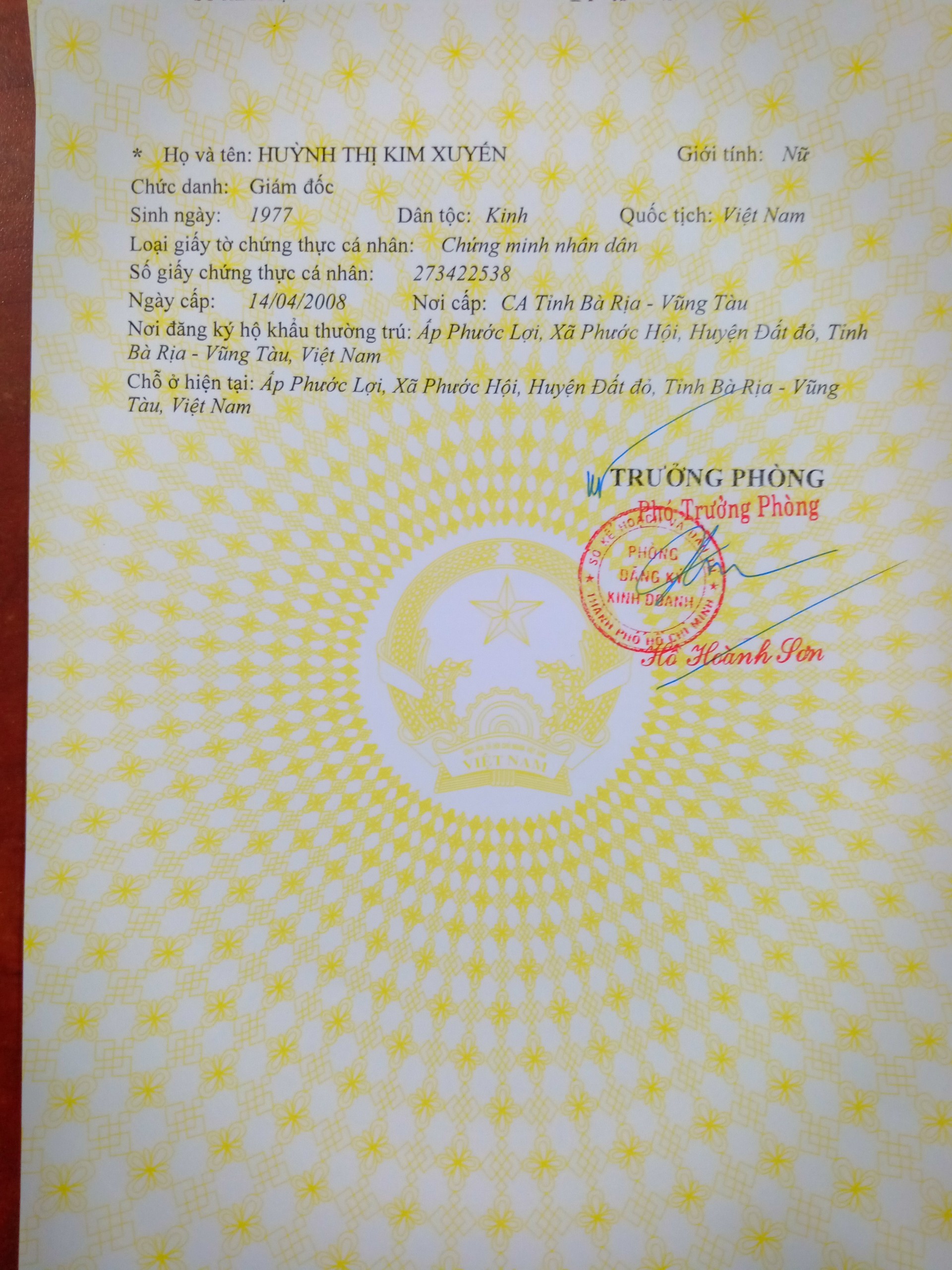 NGUYEN THI THUY HANG - 01/01/1980 - 2349567893